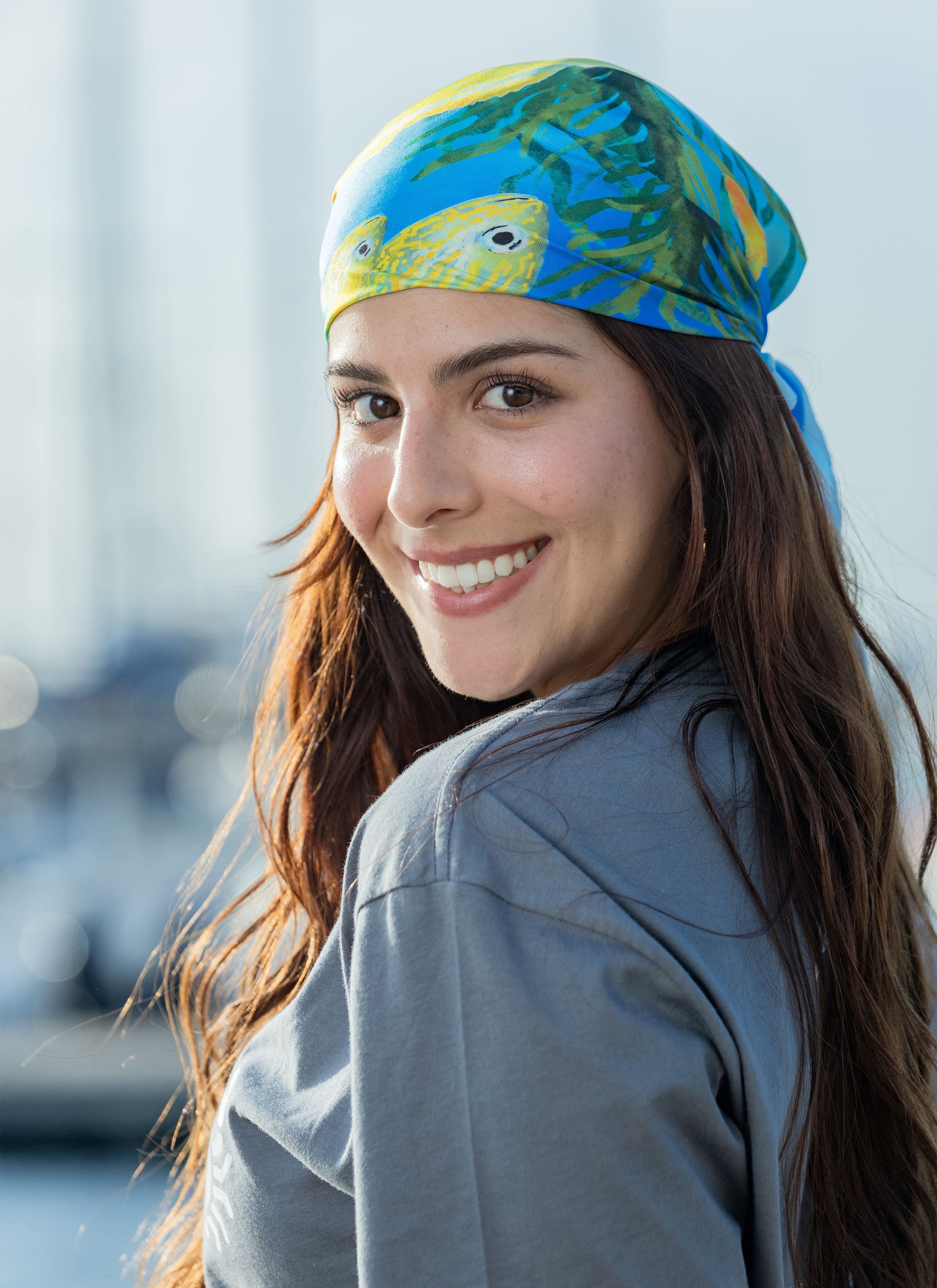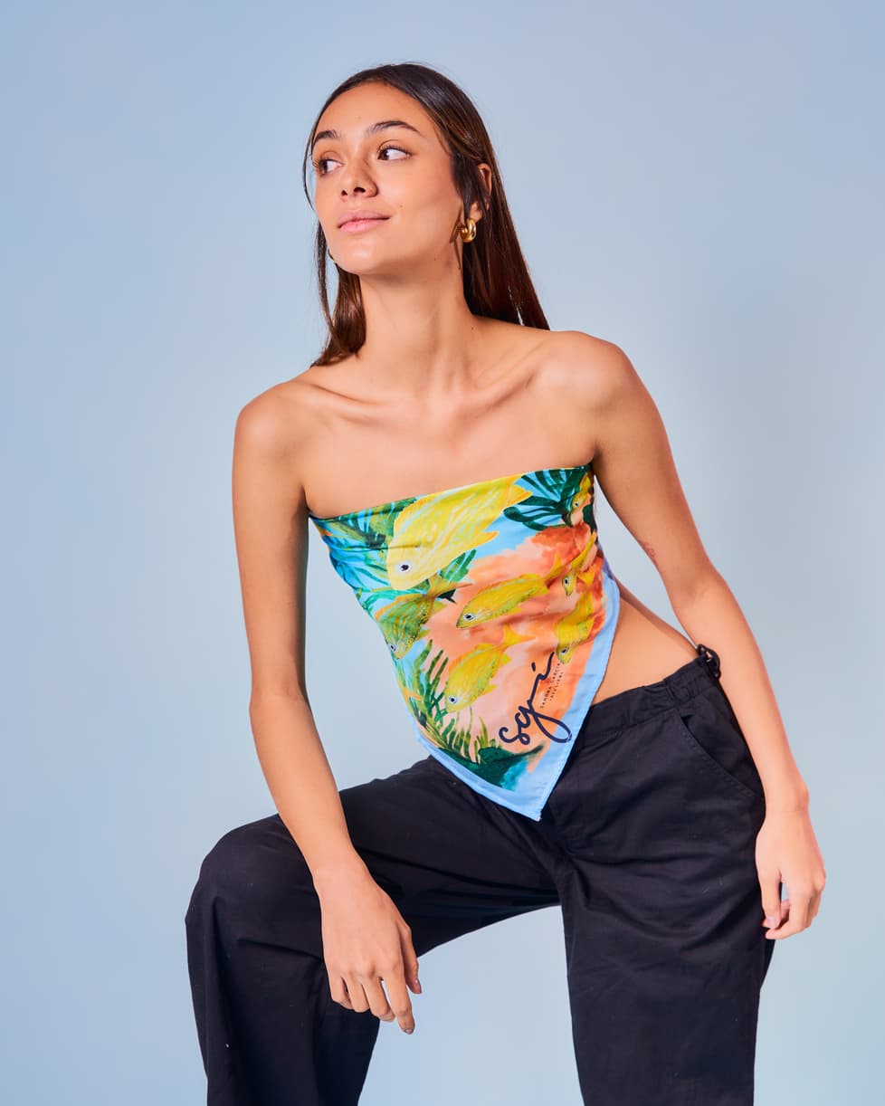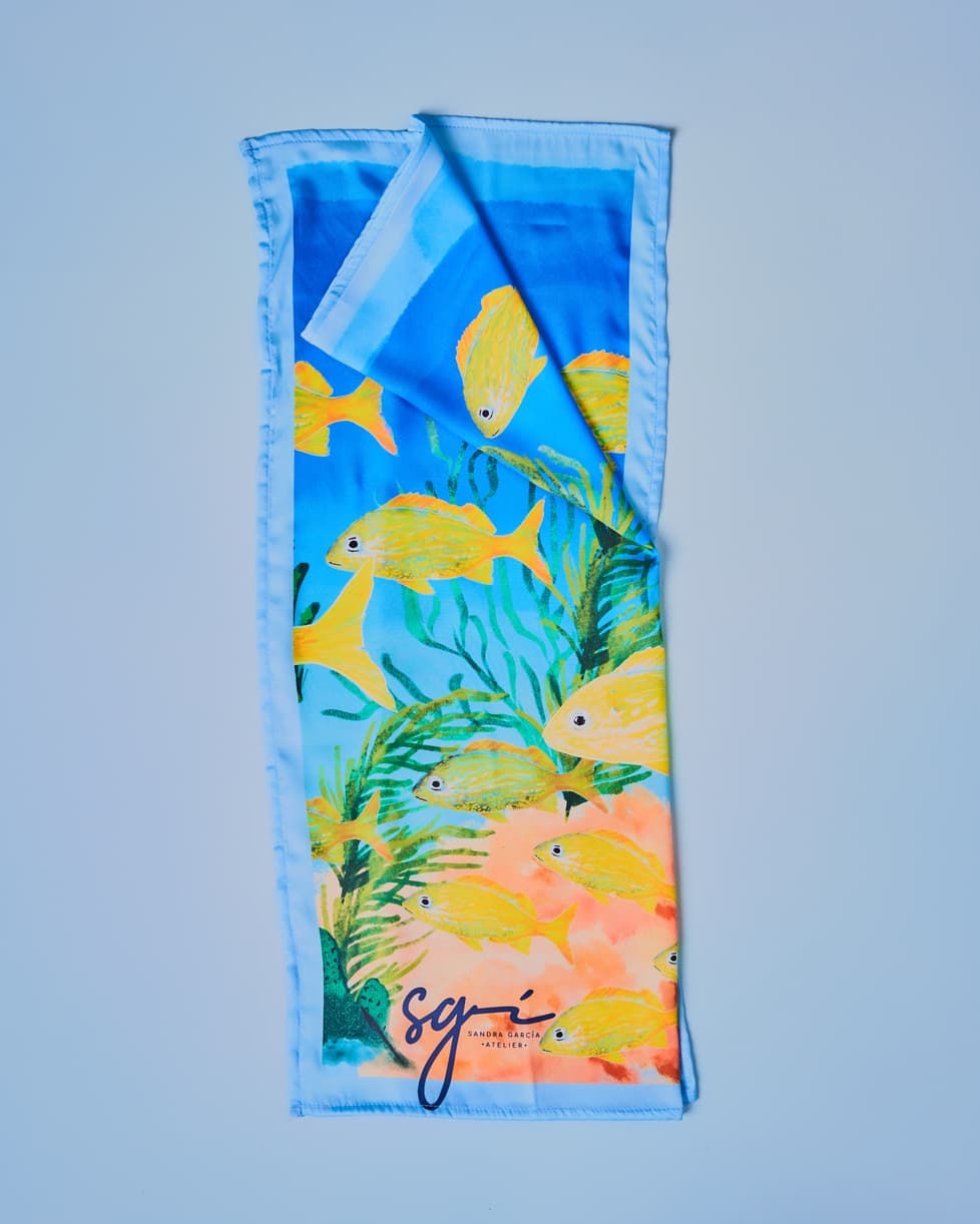 Tetes Place, en Providencia, es de esos lugares que no olvidas: bancos de peces, corales hermosos y un ecosistema lleno de magia. Aquí vive el coral pilar (Dendrogyra cylindrus), una especie endémica de Colombia que está en Peligro Crítico de extinción. Este lugar, aunque pequeño, es un mundo aparte donde la vida marina te deja sin palabras. Esta pañoleta captura esa esencia: la belleza de lo que tenemos que proteger.